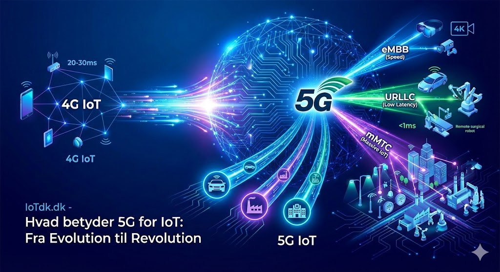 I denne artikel ser vi nærmere på forskellene mellem 4G og 5G, og vi gennemgår præcis, hvordan 5G kan ændre spillereglerne for IoT-landskabet i Danmark og resten af verden – uden at love mere, end teknologien faktisk kan levere.