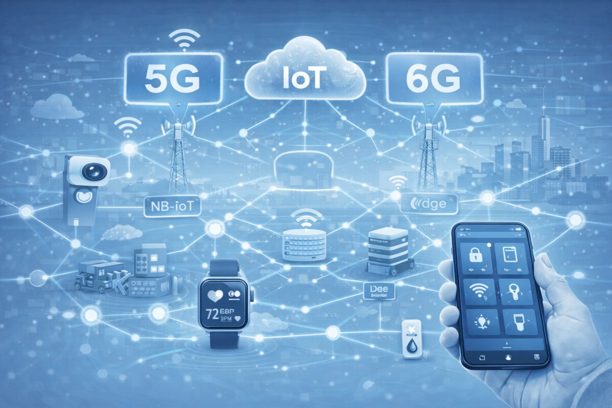 Samtidig hører man konstant om 5G og efterhånden også 6G, og det kan få IoT til at lyde som noget, der først rigtig bliver spændende “når næste generation kommer”. Men her er det vigtigt at holde forventningerne på jorden: IoT fungerer allerede i stor skala, og 5G er relevant – men ofte på en anden måde, end folk tror. Og 6G er spændende som forskning og fremtidsspor, men det er ikke noget, man bør basere konkrete IoT-beslutninger på endnu.